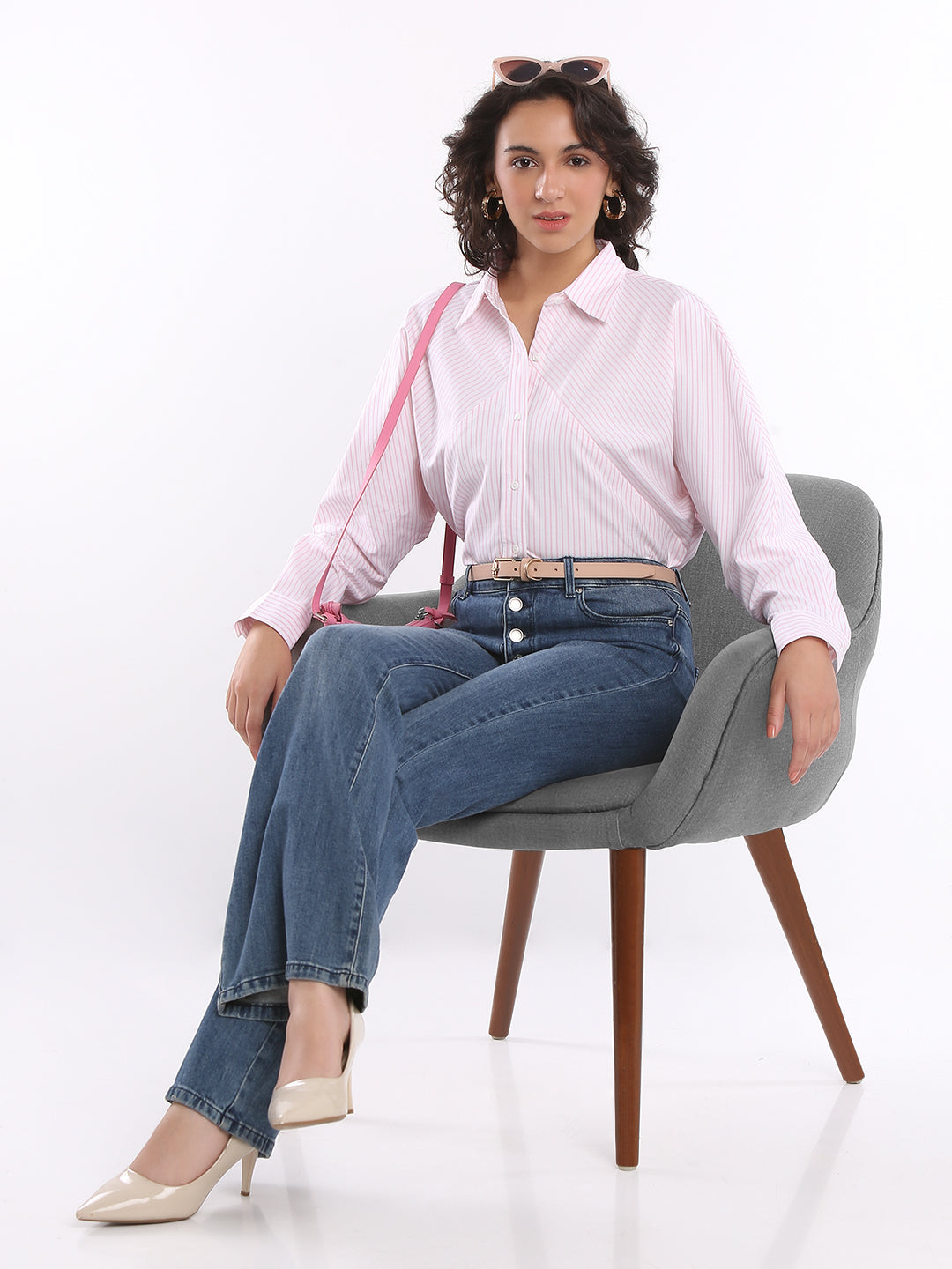 ELLORY PINK STRIPES COTTON FORMAL SHIRT FOR WOMEN
